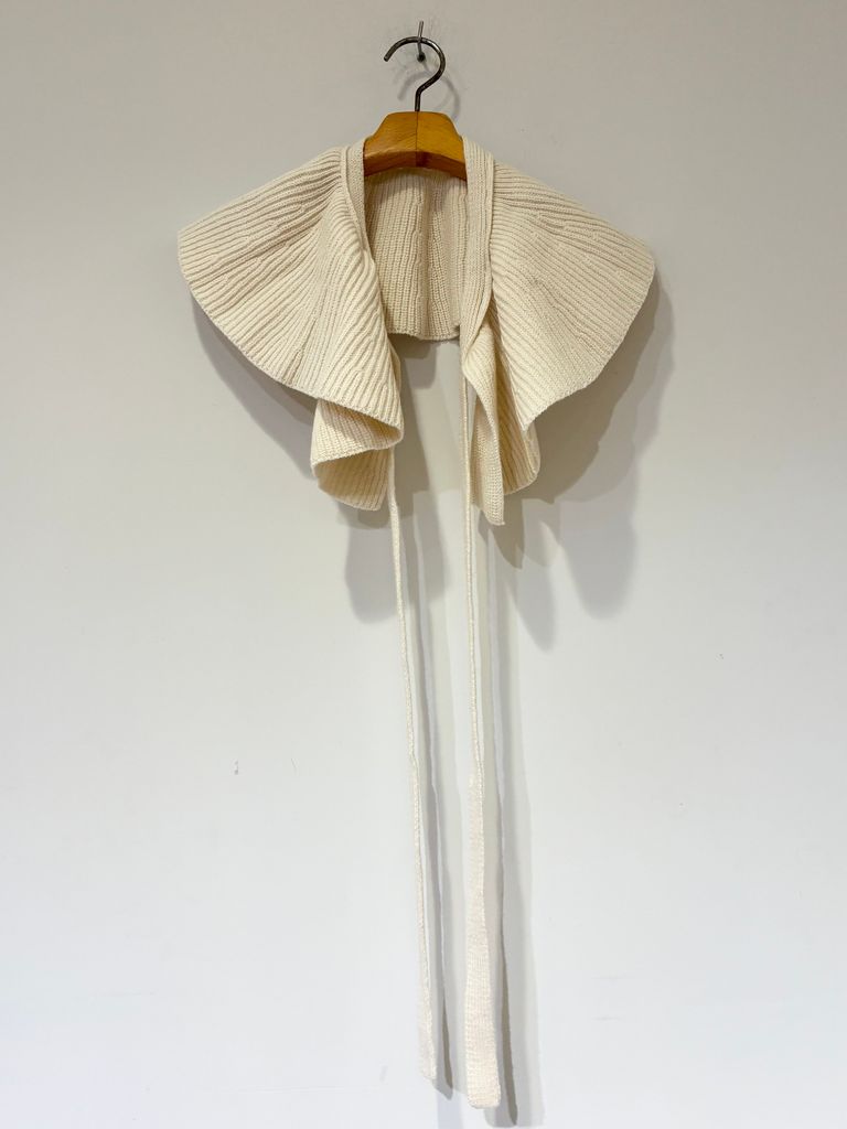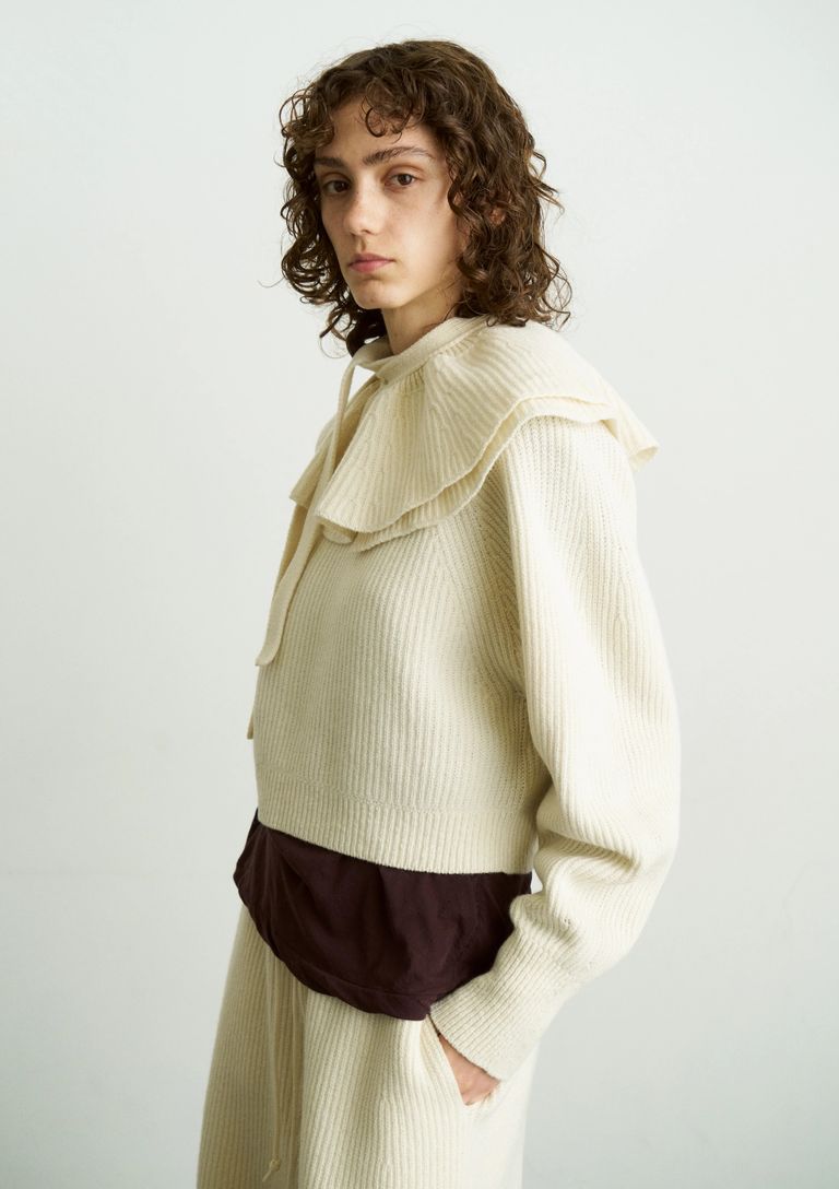 WOOLEN COTTON & EX.FINE LAMBS WOOL RIBBED-KNIT FRILL COLLAR / フリル付襟ニット / ホワイト